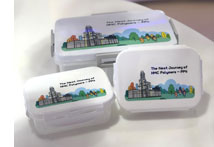 As a small memento of the ground-breaking ceremony, attendees received a food box with the body produced from the non-phthalate grade Moplen RP6110. (HMC’s newest grades Moplen RP6110, RP6111, and RP6112 have been developed to respond to the growing market demand for non-phthalate materials.)