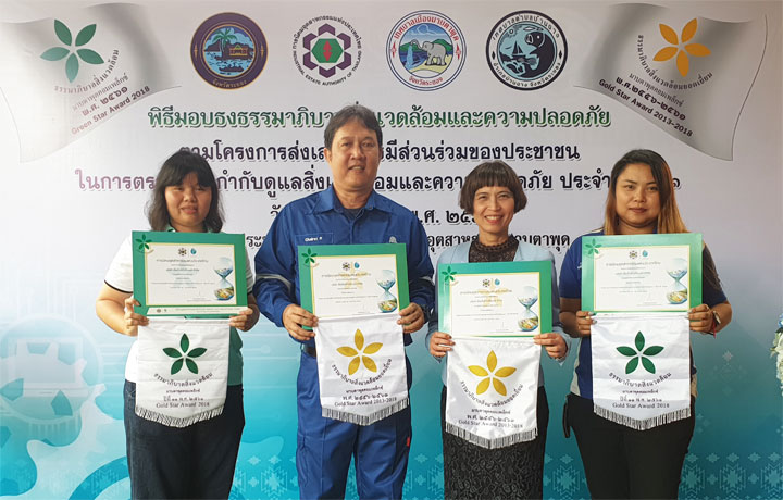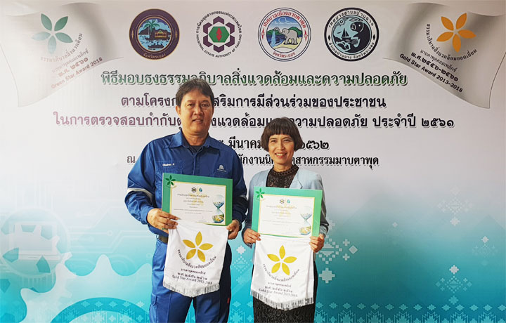On 25 March 2019, HMC representatives, Khun Chairat Pathithat (Department Manager, HSEQ) and Khun Buphaphan Phantong (Public Affairs Manager) received on behalf of HMC, the IEAT Environmental Governance Award 2018 for HMC's PP and PDH plants from Khun Somjin Piluek, the governor of the Industrial Estate Authority of Thailand (IEAT). The award was made at the Map Ta Phut office of the IEAT in Rayong.