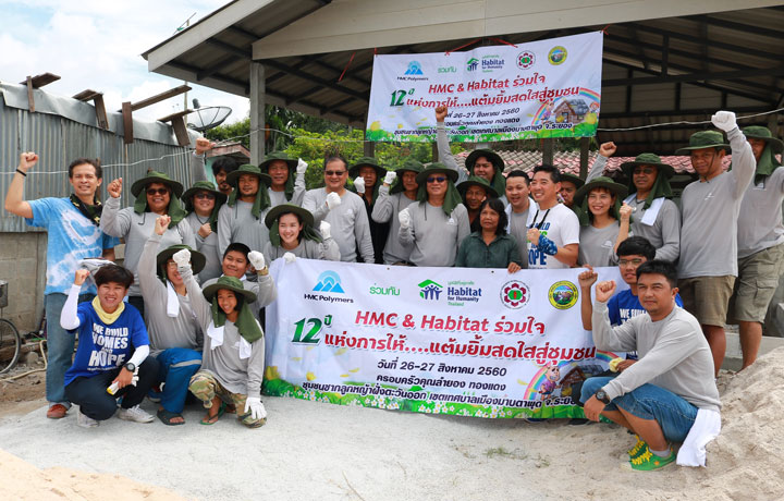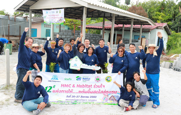 This year, the house building activity took place during 26-27 August, 2017 at Chaklookya East Community, Maptaphut, Rayong. Khun Teerawar Sudsook, Vice Rayong Governor directed the event together with Mr. Timothy Loke, CEO of Habitat for Humanity Thailand and Khun Sawangpong Kingsuwanvong, VP Manufacturing of HMC Polymers.