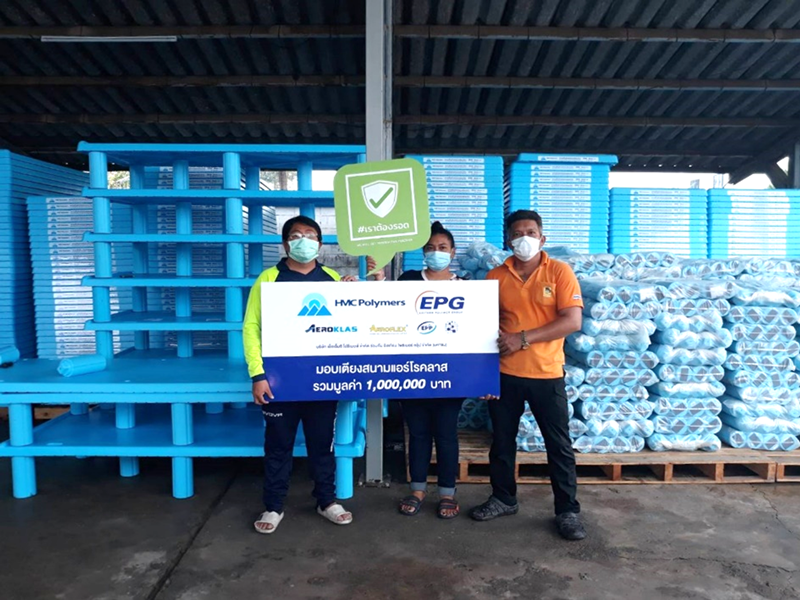 The HMC Polymers field bed initiative is part of the company's response to the "We Will Get Through This Together" (เราต้องรอด) program, with the objective of distributing field beds to community isolation centres in Bangkok, Rayong provincial public health office, including the field hospital at Chum Saeng, Wang Chan district and Map Ta Phut Municipal School Field Hospital. One hundred beds will be allocated to each centre with a total donation of 600 beds valued at 1,000,000 baht.