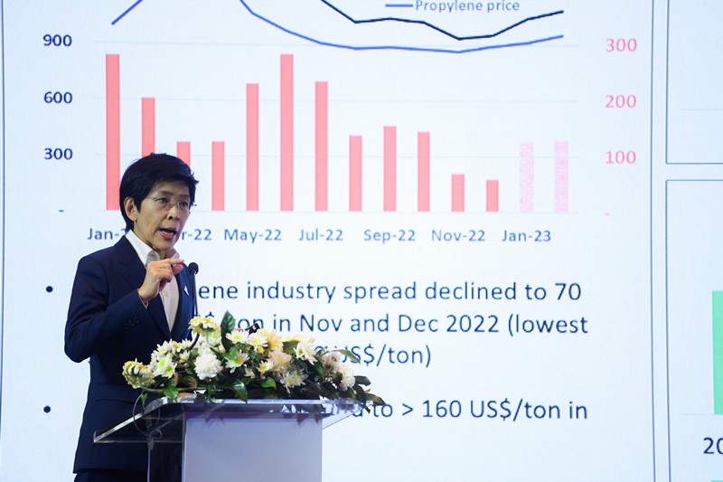 Ms.Angkanee Soonthornsawad, Vice President of Finance, Accounting and Corporate Support, concluded the press conference on HMC Polymers' overview and financial highlight. The global economy in 2022 will slow down due to the war between the Russian Federation and Ukraine and the Republic of China's Zero-Covid policy coupled with the emergence of several new PP resin manufacturers but thanks to the Operational Excellence policy, HMC Polymers had a total revenue of 32 billion baht last year, or a growth of more than 4%, with the proportion of sales of special grade products SPDP (Specialty-Differentiated) more than 50% of sales and create new innovations through product development, with growth in NPD +10% in average. The overall financial position is strong with a high proportion of capital and a low debt-to-equity ratio of 0.7 times with total assets of approximately 40 billion baht, sufficient cash flow liquidity, and from this strong financial position, HMC Polymers has received a credit rating from Fitch Rating Agency is rated A-.”