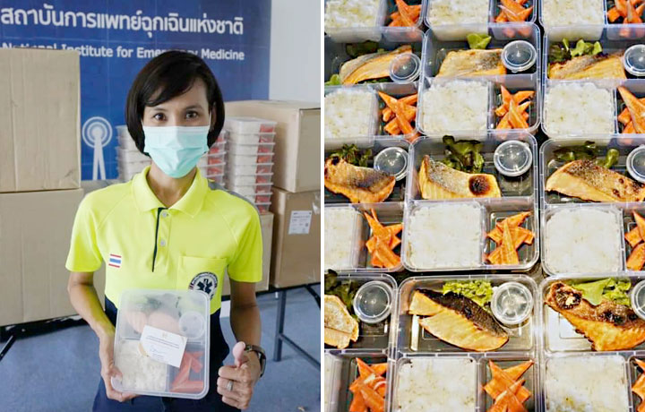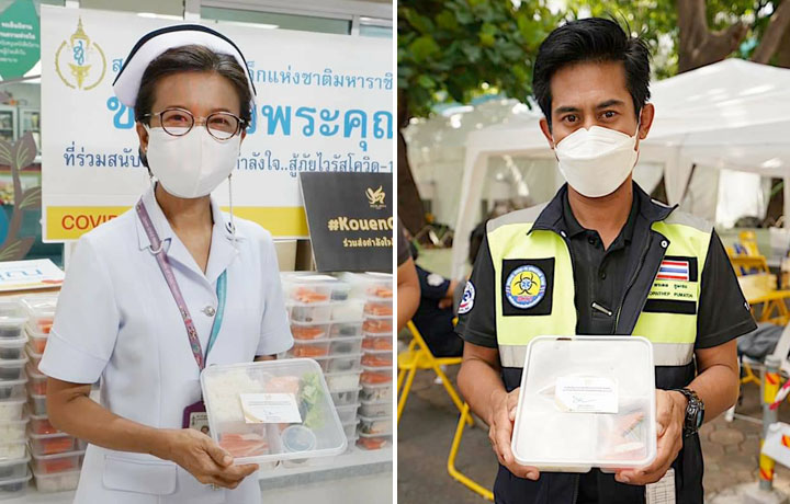 The loaded food boxes were delivered to essential medical personnel in the Bangkok and Nonthaburi areas and communities experiencing severe COVID-19 outbreaks. Those communities included the Samphanthawong and Bang Kho Laem Districts, where food boxes were provided to Samutprakarn Field Hospital, Chulabhorn Research Institute, Charoenkrung Pracharak Hospital and Rajavithi Hospital.