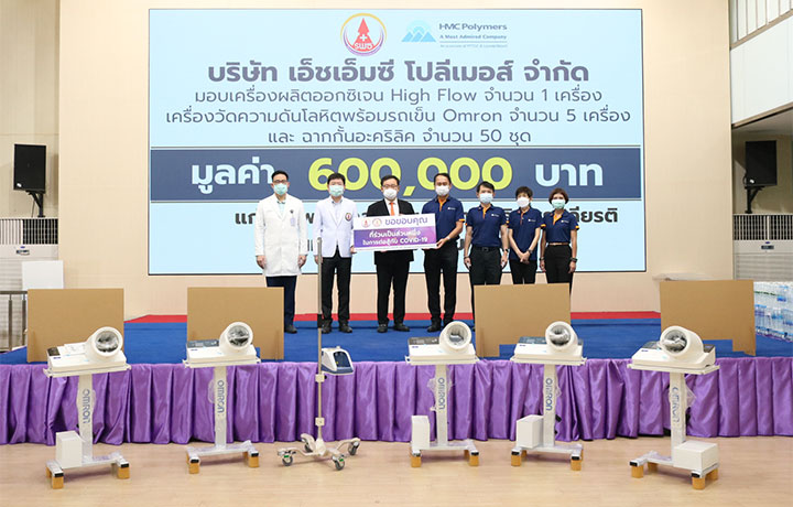 In addition to the HFNC unit donated to Thammasat U. Hospital, we also donated 50 acrylic partitions and 5 movable Blood Pressure Monitoring devices. Thammasat U. Hospital, along with other leading hospitals, is a main hub for vaccination of Thai citizens and the donations of acrylic partitions and blood pressure monitoring devices (BPMD) are necessary for those ongoing public health services. The total donation value made by HMC to Thammasat U. Hospital was THB 600,000.