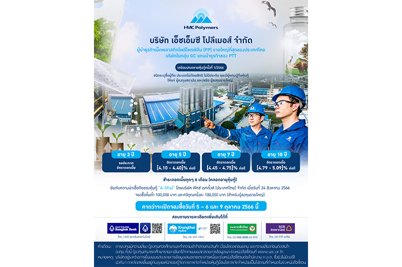 “HMC Polymers” the first and the largest PP producer in Thailand and leading PP producer in ASEAN Preparing to issue debentures for Institutional Investors and High-Net-Worth Individuals in October 2023 with the interest rate range for 5 to 10-year tranches